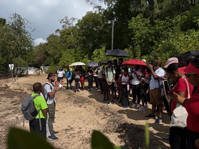 Jeudi 22 janvier 2026, le Grand Site des Salines à la Baie des Anglais a accueilli une randonnée pédagogique réunissant des étudiants en BTS Tourisme du Lycée de Bellevue et des étudiants en Licence Écologie–Environnement de l’Université des Antilles. L’occasion de croiser les regards sur ce site d’exception.